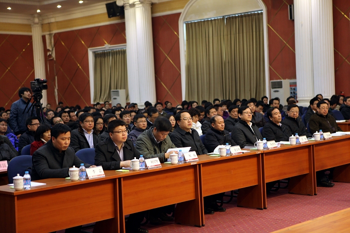 省委第11督导组组长、省人大常委、省人大环境资源城乡建设委员会副主任委员郭兴文,督导组副组长、省教育厅党组成员、省委高校工委委员花蕾,督导组成员,省委组织部副巡视员姜长杰、省委高校工委干部组织处副处长祝巍、省教育厅办公室主任科员刘兴华、省安全厅纪委主任科员李嘉,学校领导班子成员,副高级职称以上人员,全体中层干部共500余人参加了会议。