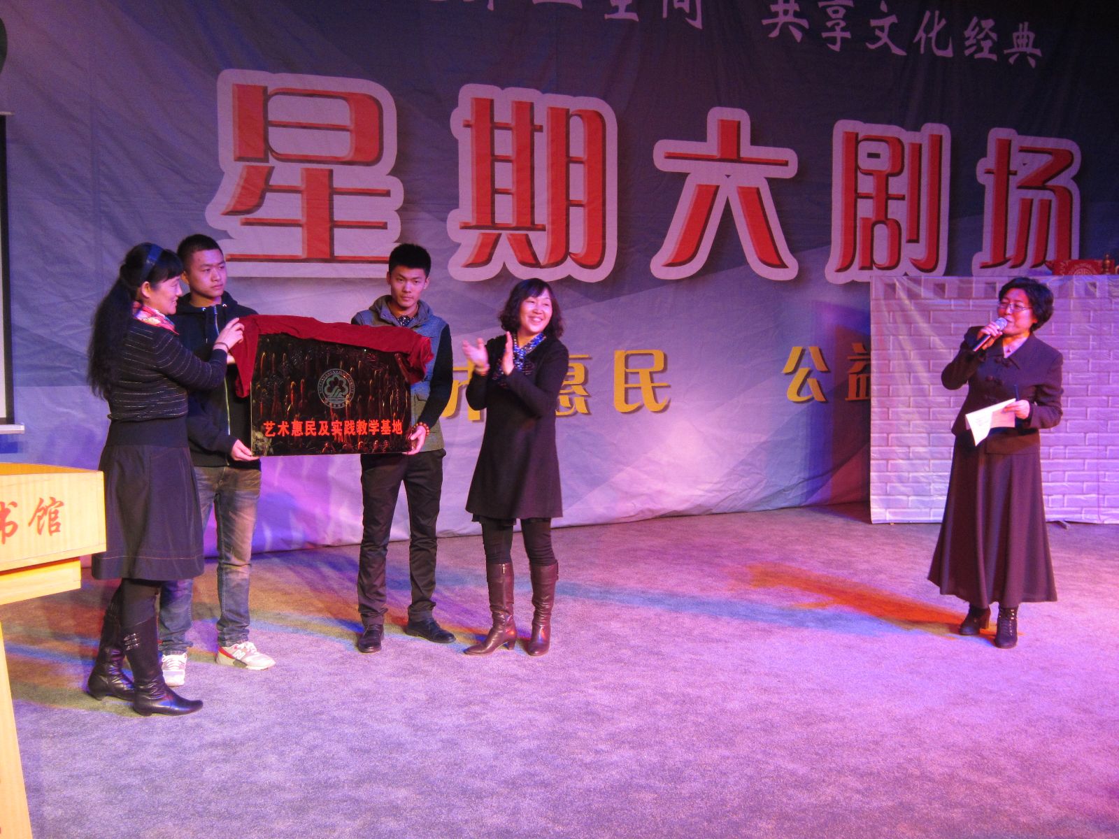仪式上,曹晓波部长与赵平平助理为基地揭牌,涂淑梅副书记对在市图“星期六剧场”建立教学实习实践基地的起因、目的和重要意义作了介绍。