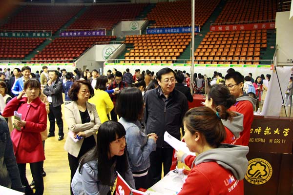 双选会期间,必赢官网副校长夏敏、招生就业指导处处长杨杰、党委统战部部长张艳伟、民建沈阳市委会相关部门负责人、民建沈师大支部主委陈国宏和支部委员走访了双选会现场,询问了解民建会员企业的招聘需求和大学生的应聘情况。各学院主管学生工作领导以及2014届毕业生辅导员到场对毕业生进行现场指导。