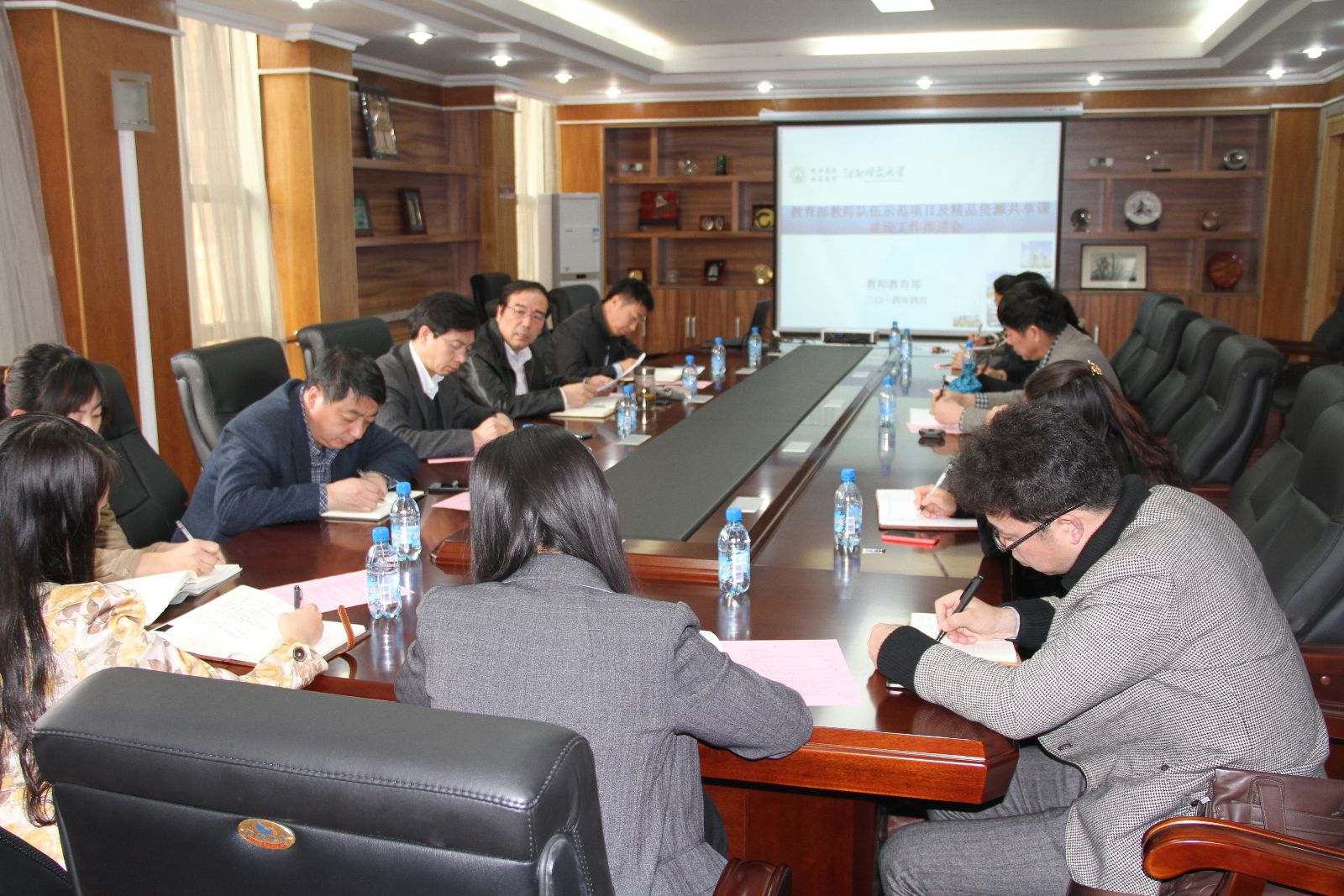 会上,刘天成处长回顾了教师队伍示范项目及精品资源共享课获批以来,国家、我省及学校为推进示范项目和课程建设所开展的主要工作、两门首批接受中期检查的国家级精品资源共享课的验收情况以及对项目和课程建设的经费支持情况。