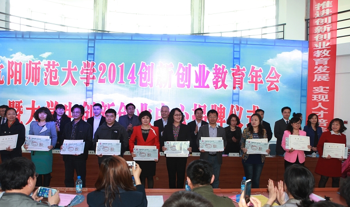 与会领导为获得2012年大学生创新创业结题优秀项目的指导教师颁奖