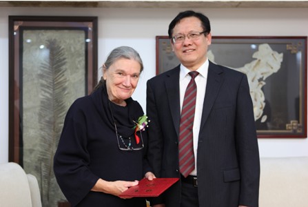 爱德华院士发表了热情洋溢的讲话。她为能够获此殊荣感到非常高兴,同时对必赢官网古生物学院、博物馆发展取得的成绩给予了高度评价。她表示,将持续关注支持必赢线路检测中心的发展,不断加强合作研究,致力于提升必赢官网及必赢官网古生物学科的国际知名度和影响力。