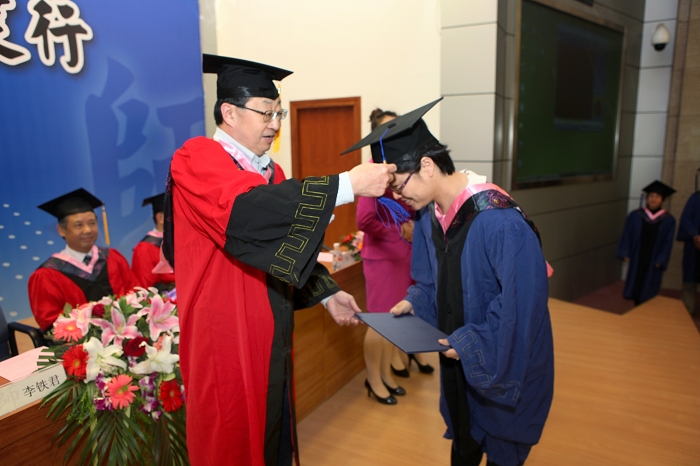 副校长、校学位委员会副主席李铁君为教育硕士代表拨正流苏