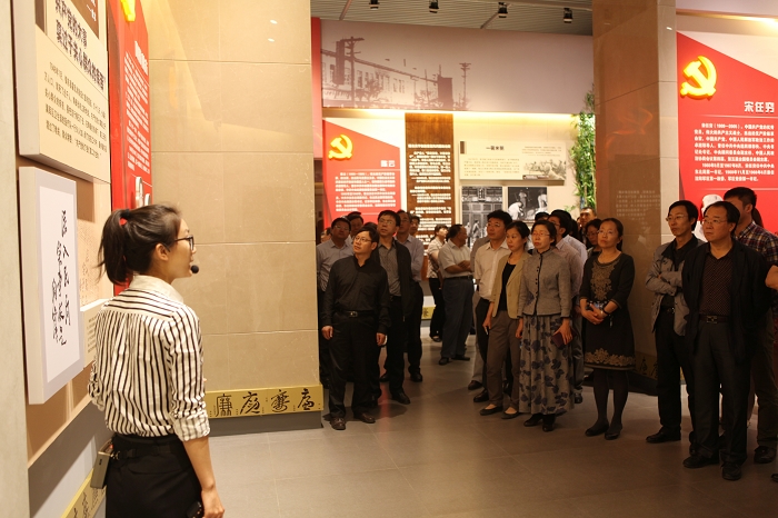 为落实党的群众路线教育实践活动相关要求,加强党员干部理想信念、群众路线、宗旨意识、组织纪律、党纪党风和道德规范教育,5月22日下午, 由党委书记于文明同志带队参观了辽宁省反腐倡廉展览馆,共100余名中层干部参加。党委副书记贾玉明,副校长关松林、王大超,校长助理刘中海一同参加。