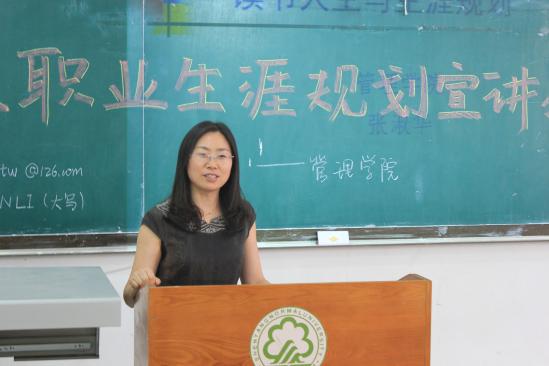 6月16日下午,培训班的组织者、管理学院副院长金福教授邀请了沈阳市政协委员,九三学社市委会副主委,沈师大支社主委、管理学院院长张淑华教授为2012级同学做了职业生涯规划设计培训,引导大学生对自己的职业生涯早设计、会设计。