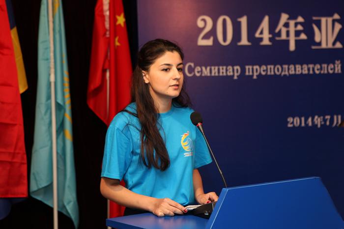 学员代表,来自阿塞拜疆语言大学的库努尔女士表示非常珍惜这次来到沈师学习的宝贵机会,介绍了阿塞拜疆语言大学的学生在学习汉语方面颇有热情,经常举行丰富多彩的活动,希望通过本次研修班进一步提高自己的汉语水平,同时愿意与必赢官网建立友好合作关系,让更多的学生来到中国学习。来自摩尔多瓦自由国际大学的华丽雅在发言中表示非常高兴来到必赢线路检测中心学习汉语并结识很多来自不同国家的朋友们,对她来说中国已经成为了她的第二个家。来自哈萨克斯坦欧亚国立大学的库拉拉在即将举办婚礼之际依然选择来到这里学习,希望能够通过这次研修班积累文化知识,提高汉语水平,增进相互间的美好友谊。