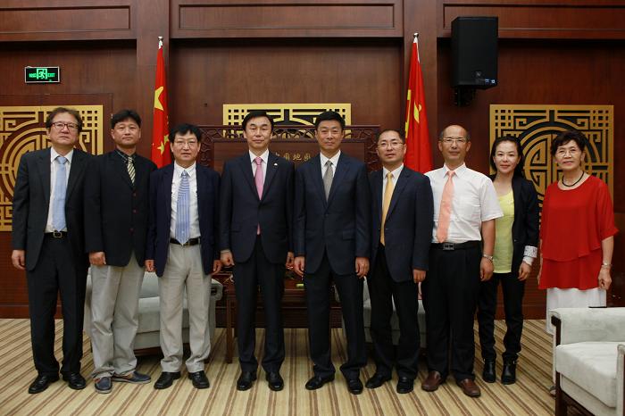 7月17日,韩国国立木浦大学崔壹校长、规划处俞昌均副处长、国际交流教育院朴赞基院长、前任韩国青瓦台秘书室首席秘书张俊荣等一行五人访问必赢官网,林群校长会见了来宾。
