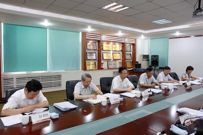省委常委、省委宣传部部长范卫平(左三),省教育厅厅长、省委高校工委书记张福昌(左二),省委组织部副部长郭平(右三),省委第十一督导组组长郭兴文(右二)、副组长花蕾(右一),省委组织部副厅级巡视员谷孝红(左一)参加民主生活会