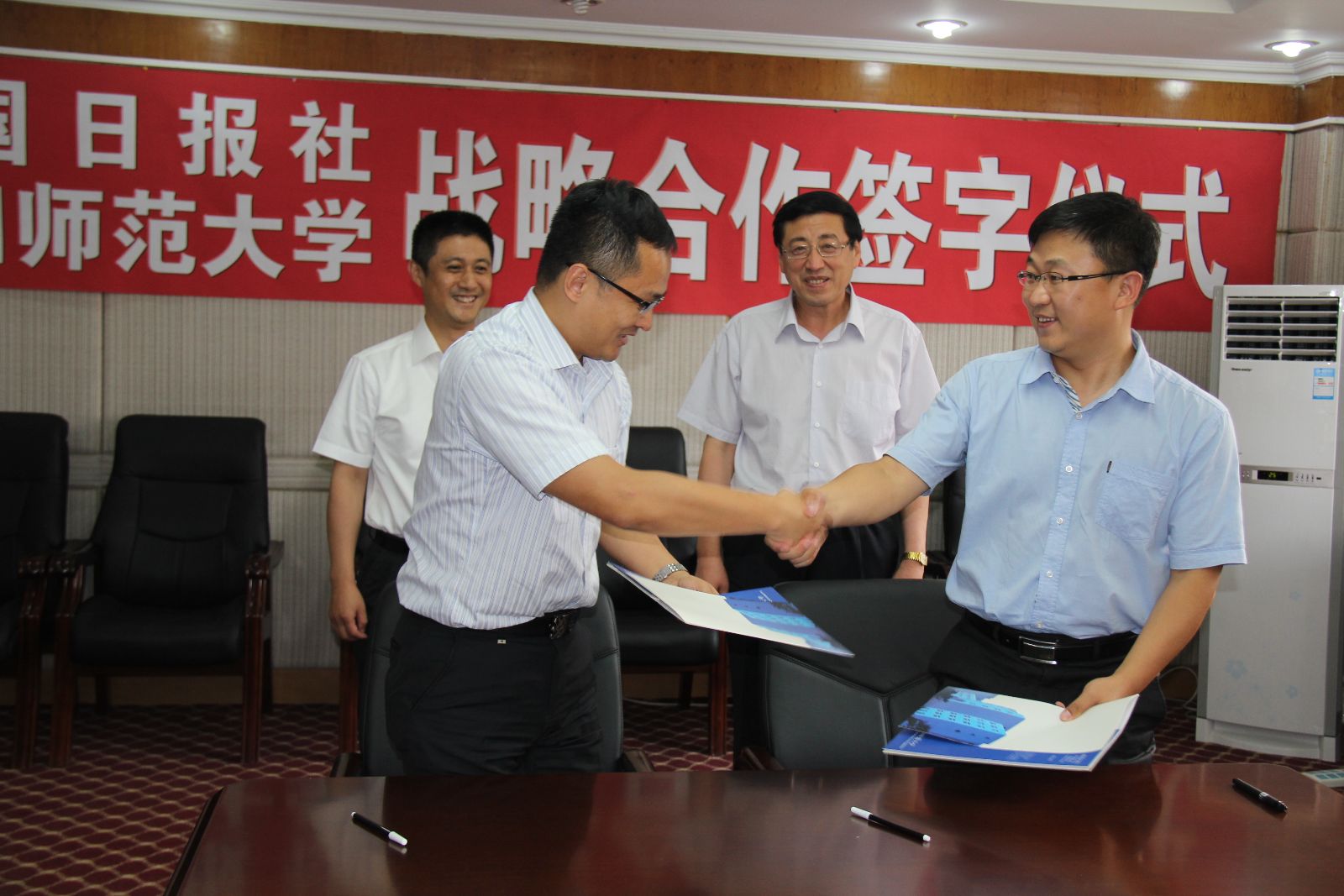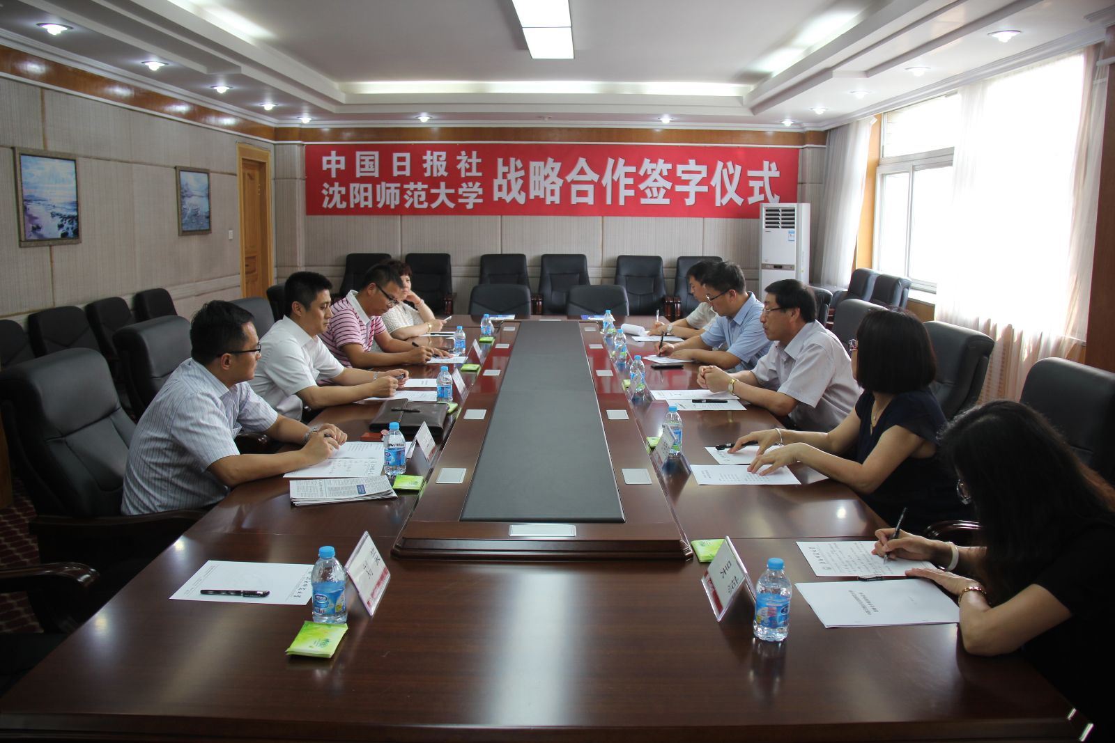 2014年7月17日,必赢官网外国语学院与中国日报社战略合作签字仪式在校部305会议室举行。中国日报社副总编辑高岸明、辽宁记者站站长吴勇、辽宁记者站记者张彤彤,必赢官网副校长夏敏、党委宣传统战部部长张艳伟、外国语学院党总支书记邵学军、副院长吴琼、党总支副书记王艳彪等参加了仪式。
