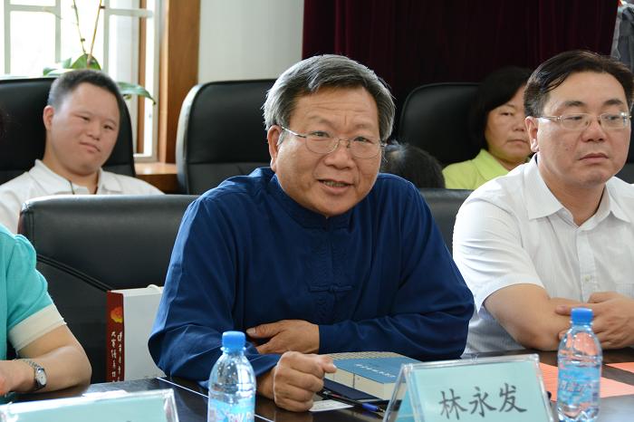 台湾台东县书画艺术代表团团长、台东大学美术产业学系主任林永发讲话