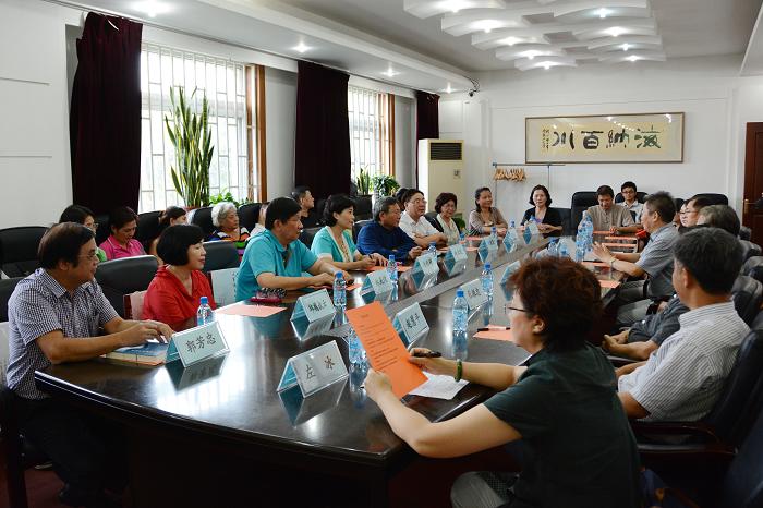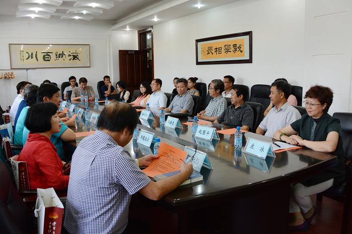 书法教育研究所所长杨宝林向艺术团介绍了书法教育研究所的基本情况和学校在书法教育方面的情况。