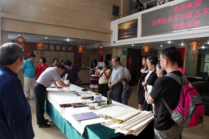 党委书记于文明发表了热情洋溢的讲话。他代表学校对台东县书画艺术代表团的到来表示热烈欢迎。他说,通过此次交流活动,进一步加深双方之间的相互沟通与了解,同时,让我们以书法和绘画艺术为纽带,共同携手,为中华文化的发展共同努力,不断做出更多、更好的贡献。
