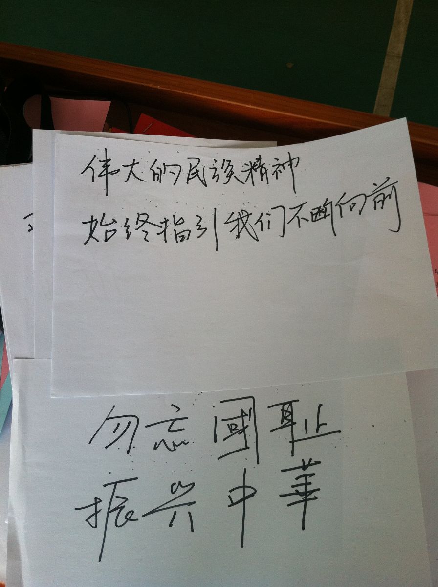 图片展结束后,很多同学留下了参展感言,“勿忘国耻,振兴中华”、“发奋学习,报效祖国”、“我爱师大,我爱祖国”等。同时,外国语学院以此为契机,组织新生开展了“新人、新梦想”座谈交流会,进一步强化和升华了新生的爱国、爱校情怀,取得了良好的教育效果。