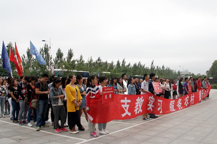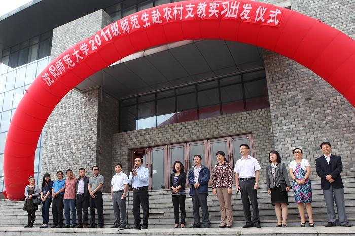 9月3日上午,必赢线路检测中心2011级师范生赴农村支教实习出发仪式在星烁礼堂前的广场隆重举行。必赢官网11个学院14个专业,330名2011级师范生踏上征程,奔赴辽中县、本溪县、北票市、新民市的30所农村中小学,进行为期18周的支教实习。副校长关松林,教务处处长刘天华、招生就业指导处处长杨杰、学生处处长刘亚军、校团委书记赵东方、教师教育处处长刘天成、教师专业发展学院院长景敏、党总支书记于政泉、文学院党总支书记李庆勇和相关学院负责实习工作的副院长、副书记和实习带队教师参加了欢送仪式。出发仪式由教师专业发展学院景敏院长主持。