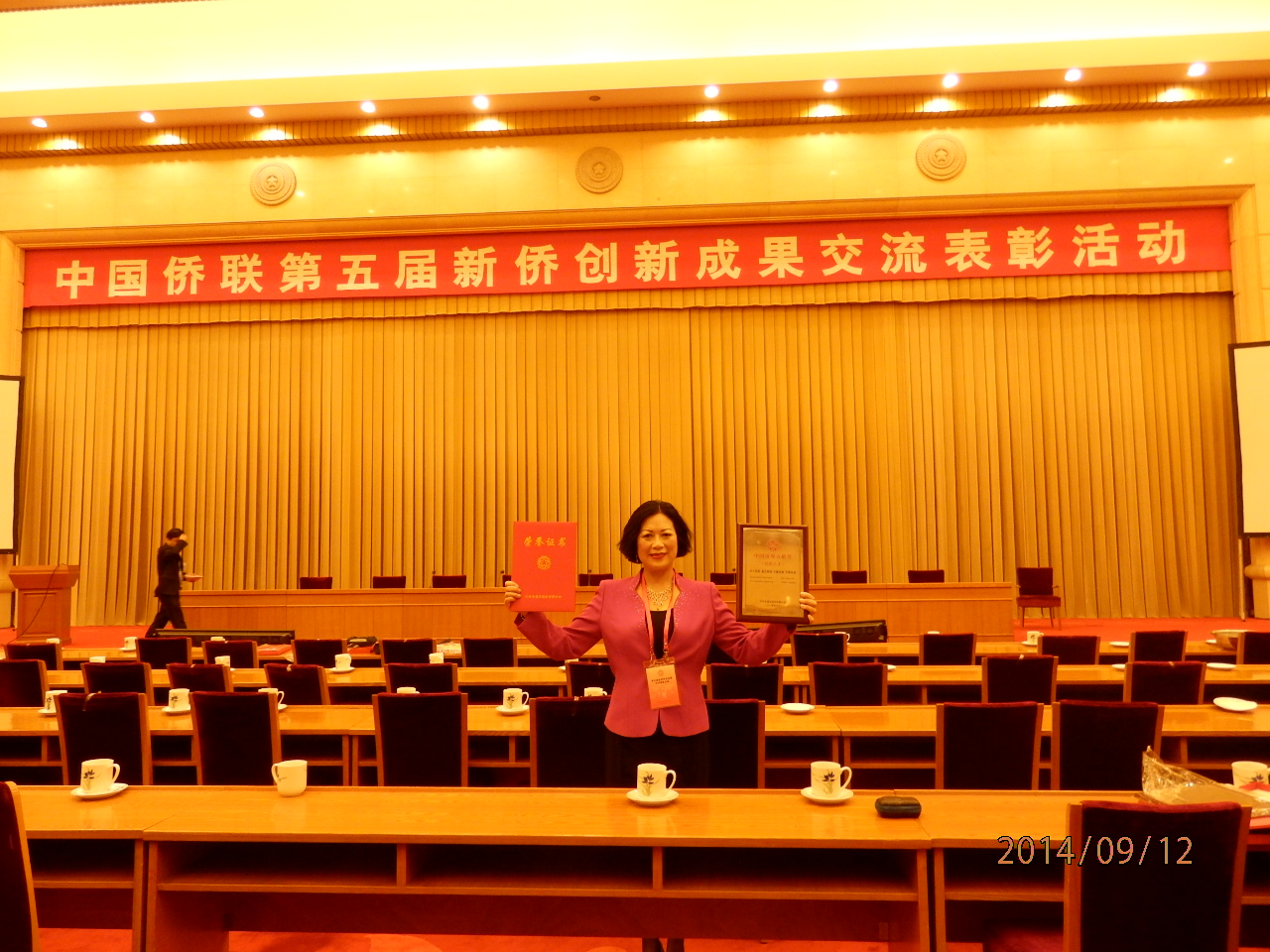 2014年9月12日,中国侨联“第五届新侨创新成果交流表彰会”在北京京西宾馆隆重举行。必赢官网特聘教授孙河川博士被中国侨联授予“中国侨界贡献奖(创新人才)”称号并应邀出席了颁奖大会。全国政协副主席李海峰,十一届全国人大副委员长、中科院原院长路甬祥,中国科协书记处书记王春法,中国侨联主席林军,中国侨联副主席董中原、李卓彬、乔卫、康晓萍,以及中组部、中科院、中国科协、国家人力资源和社会保障部等单位领导为获奖代表颁发了奖牌和证书。
