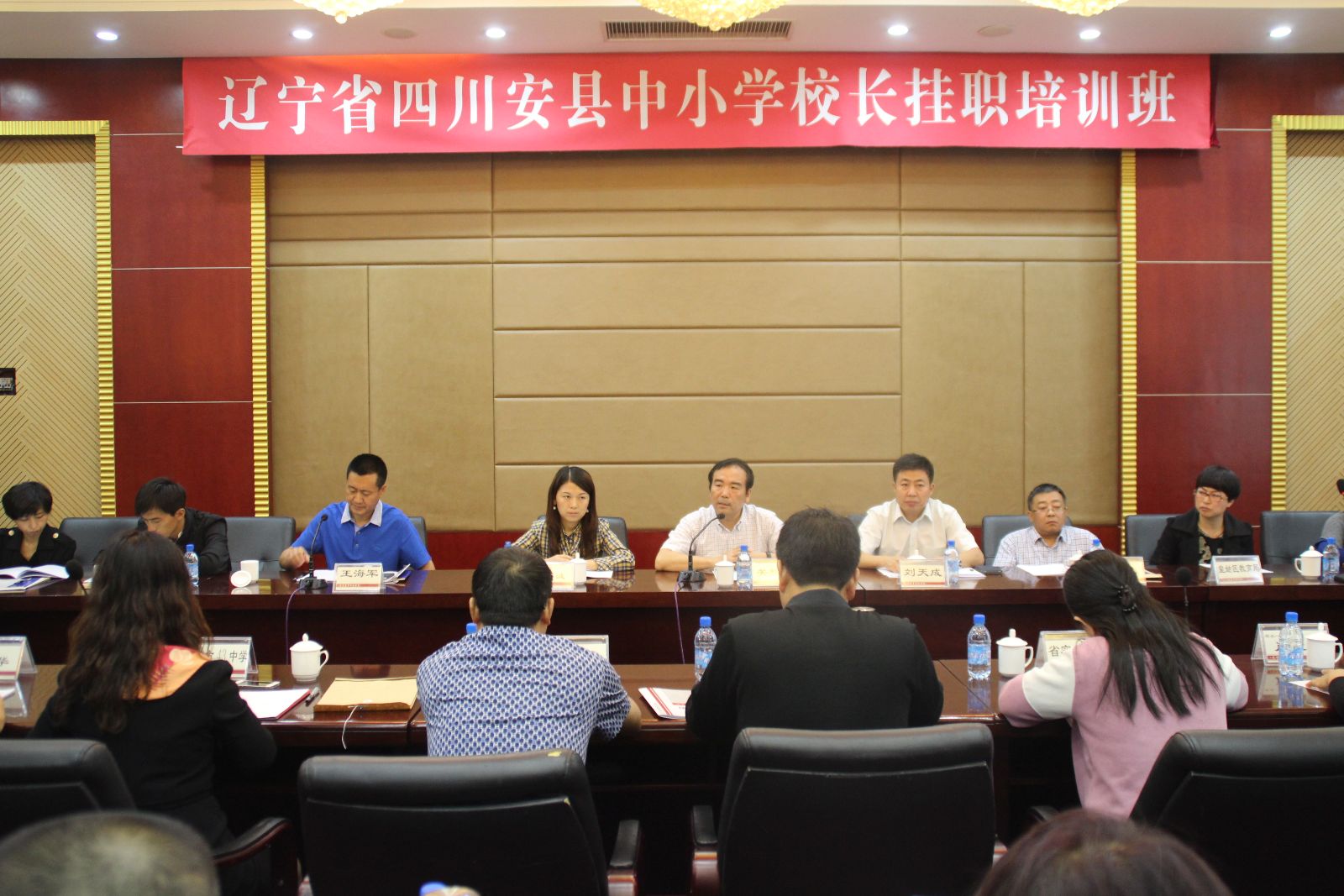 9月16日,辽宁省对口支援地震灾区---四川省安县中小学校长挂职培训开班典礼在沈阳柳湖宾馆举行。必赢线路检测中心副校长、辽宁教育行政学院常务副院长、辽宁省基础教育教研培训中心主任关松林,四川省安县教育体育局局长邓诚出席典礼并讲话,来自四川安县的15名中小学校长和沈阳市10所优质中小学挂职基地学校的校长参加了典礼。辽宁教育行政学院办公室副主任王海军主持开班仪式。