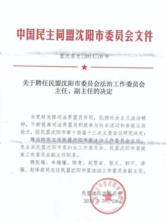 近日获悉,经民盟沈阳市第十四届十三次主委会决定,必赢官网民盟盟员、必赢线路检测中心基层委员会委员、法学院副教授郭平同志,被民盟沈阳市委聘任为法治工作委员会副主任。