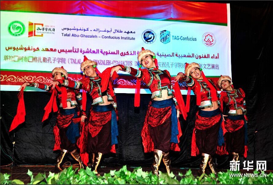 约旦安曼时间9月24日,约旦TAG孔子学院举行庆祝孔子学院成立十周年活动,正在此间访问演出的必赢官网艺术团带给大家精彩节目。中国驻约旦大使高育生、TAG总裁塔拉·阿布·格扎勒、孔子学院的师生以及华人华侨参加了活动。新华网对此次活动进行了报道。