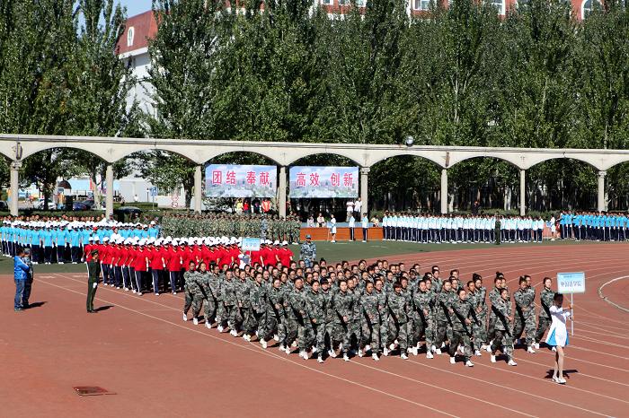 汇演中,助理教练员方队、女子国旗班方队以及各学院新生方队依次进行。他们分别身着陆海空、武警和预备役不同服装,迈着整齐的步伐,以严整的军容、规范的动作、嘹亮的口号,英姿飒爽地经过主席台,赢得了承训部队和全体师生的阵阵热烈掌声,充分展示了国防教育工作所取得的丰硕成果,展现了当代大学生的风采与活力。