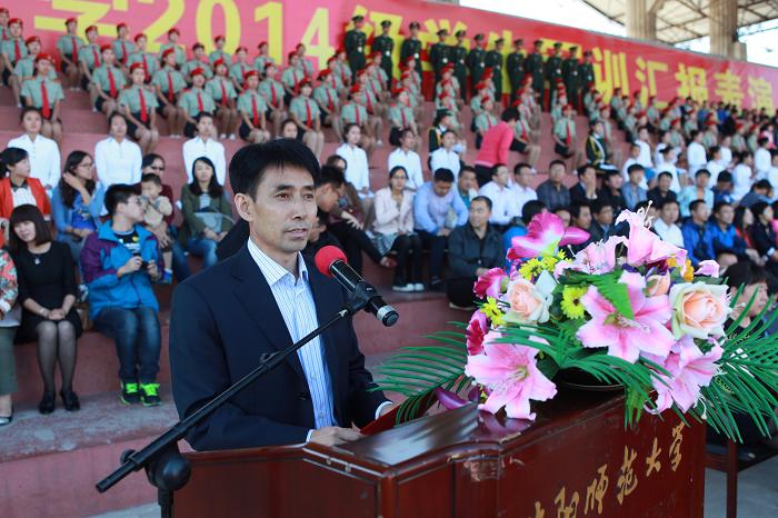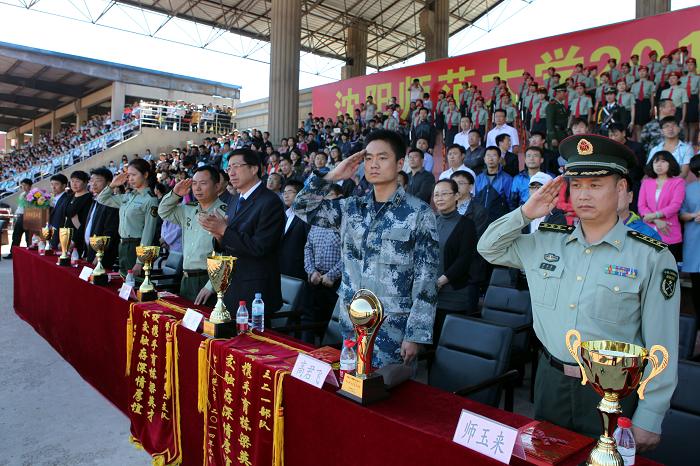 伴随着雄壮有力的国歌,冉冉升起的五星红旗拉开了汇报表演的序幕。夏敏副校长向全体参演人员表达了由衷的问候。“壮军魂,树校风,为沈师争光!”全体参演人员以洪亮的口号声作为回应,展现出他们的坚定信心与精神风貌。