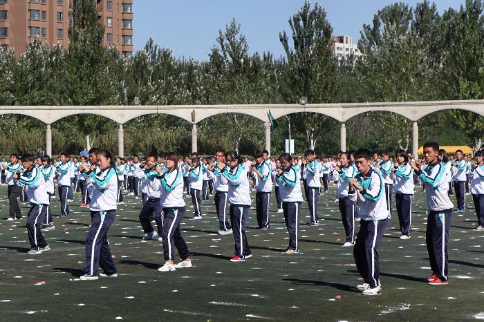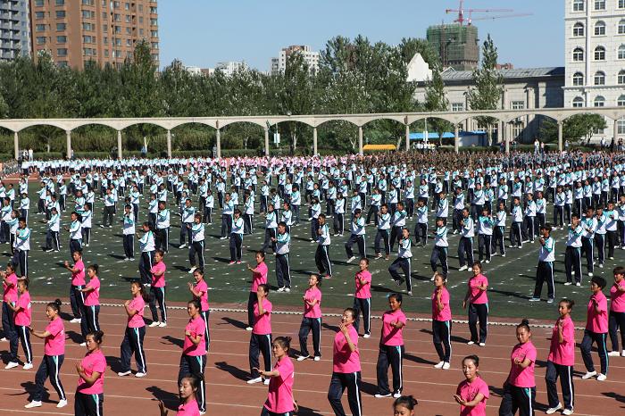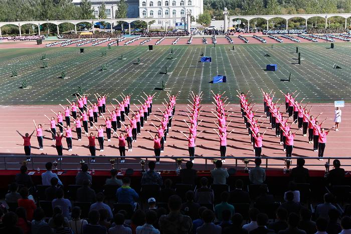 国防教育汇演的压轴节目是改编自热门歌曲《小苹果》的千人舞蹈——《美丽沈师大》。“你是我的美丽沈师大,欣欣向荣全靠你我他。传承文明一起创佳话,激昂的年华青春无限大。”文采洋溢的沈师人改编的歌词朗朗上口,既完美诠释了师大的无限魅力又展现出新一届同学们积极向上的品格。动感的节奏将现场火热气氛引入高潮,观众全体起立一同舞蹈,壮观的场面使体育场变成律动的海洋。