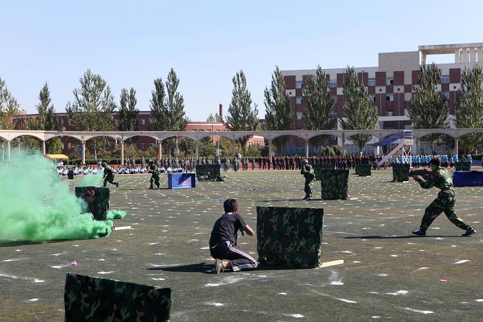 最具特色的是战术表演与军体拳表演。战术表演模拟的是一位同学被恐怖分子劫持,反恐小分队采取机制灵活的战术解救了人质,为同学们展示了作为当代大学生的英勇和睿智。军体拳表演由武警搏击拳和解放军军体拳两个方阵组成。他们动作整齐娴熟,干净利落,展示出沈师新生优秀的身体素质与运动技能。