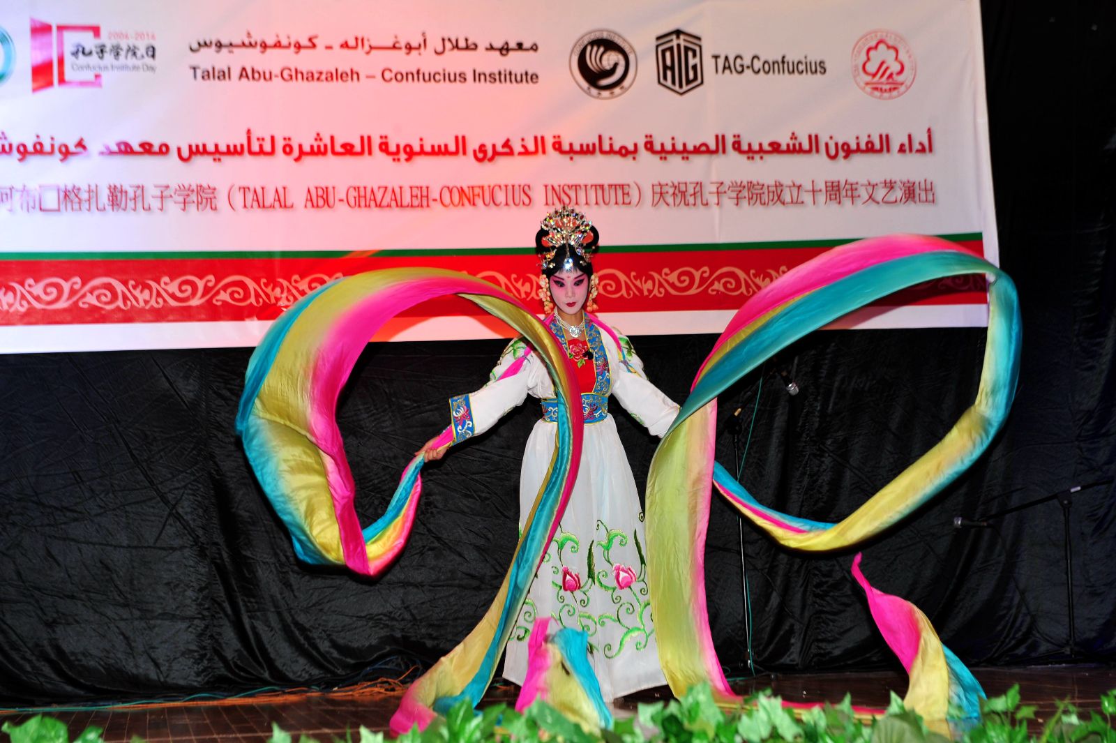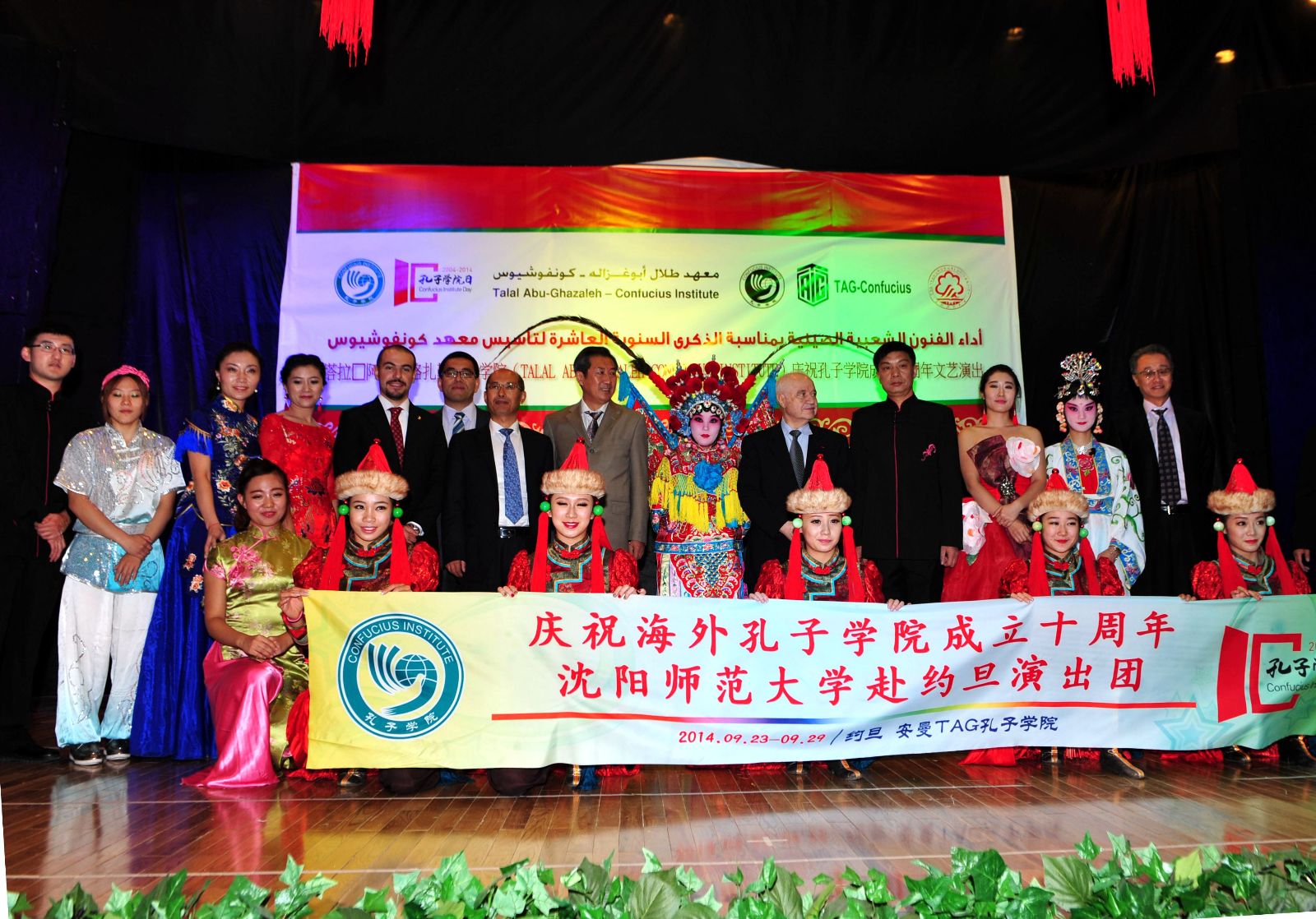 24日,约旦安曼TAG孔子学院庆祝孔子学院成立十周年文艺演出在约旦国际学校剧场隆重举行。中国驻约旦大使高育生,约旦前议员、TAG集团总裁塔拉·阿布·格扎勒,议员穆罕默德·麦素瑞,中国驻约大使馆文化参赞聂国安,TAG孔子学院中、外方院长张成羽和阿拉兹以及约旦社会各界友好人士以及华人华侨、中资机构员工、孔子学院师生及留学生等近450人观看了演出。