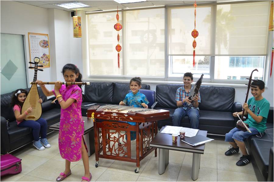 约旦学生体验中国民族乐器