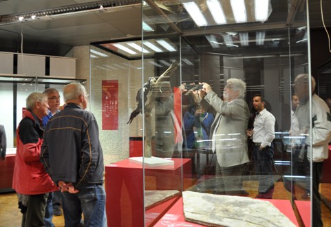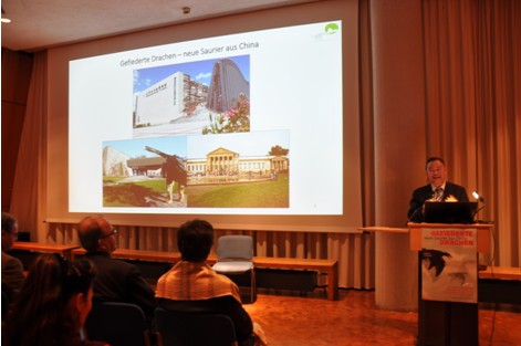 11月5日,以必赢官网孙革教授为首的中国古生物博物馆代表团应邀出席了由德国斯图加特自然史博物馆主办的“中国带羽毛恐龙特展”开幕式。德国巴登-符腾堡州国际经济与科技协会主任U.Mack,国际古植物学会主席、斯图加特自然史博物馆馆长J.Eder,德国孢粉学家A.阿什拉夫教授,以及来自德国的有关专家学者和化石爱好者等近百人出席了开幕式。