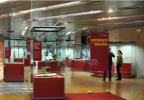 在德国斯图加特自然史博物馆举办的“中国带羽毛恐龙特展”展厅