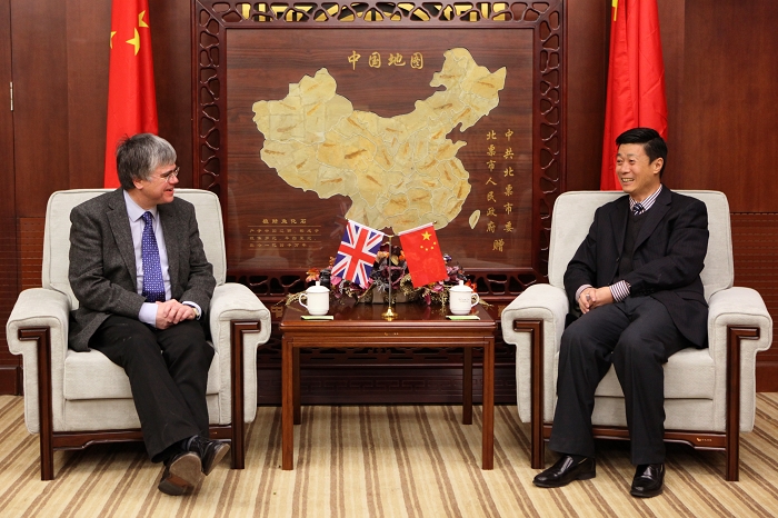 会见前,戴维斯副校长一行在国际教育学院会议室与必赢官网进行了座谈,就两校在硕士联合培养、学生长短期交流、教师学术研讨以及相关专业的合作方向等方面进行了细致的探讨。