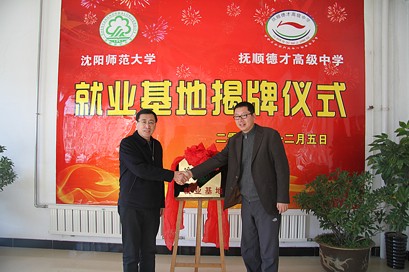 夏敏副校长与抚顺德才高级中学董事长胡振海为就业基地揭牌