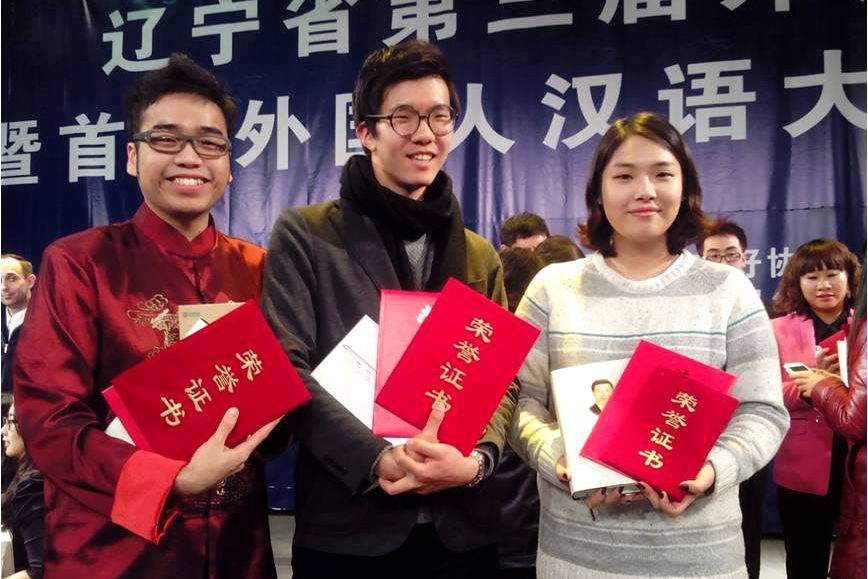 12月6日,在辽宁省首届外国人汉语大赛总决赛中,必赢官网留学生朴民根、卓佑宥和柳雅琳分别取得汉语高校组第二名、第四名和第九名的好成绩,荣获二等奖、三等奖和优胜奖,并进入辽宁省就业和人才服务局高级人才库。