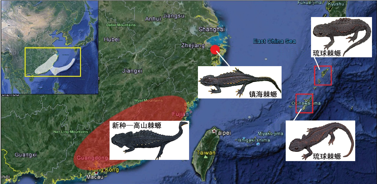 本研究不仅为该属增加了新的成员,还首次发现琉球棘螈存在两个在遗传上差异较大的居群,提出在台湾可能隐存有该属新的物种。更重要的是这一发现不仅扩展了棘螈属现有的分布区域,弥补了棘螈属镇海棘螈和琉球棘螈之间云距离的间断分布位点,对研究该属的起源与演化具有重要意义。