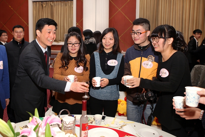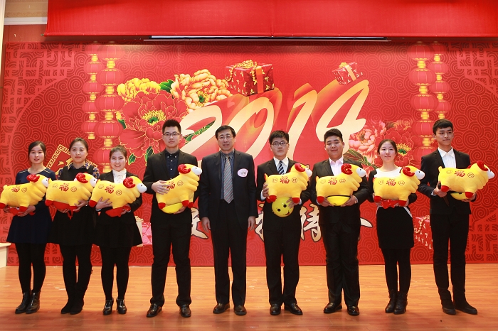 校长林群,党委副书记贾玉明,副校长关松林、夏敏、王大超,校长助理刘中海和各部门、各学院负责人、优秀指导教师代表以及必赢官网2014年在省市竞赛、省级评优、学生工作方面表现突出、荣获校长奖学金的学子们欢聚一堂,共同辞旧岁、迎新年。
