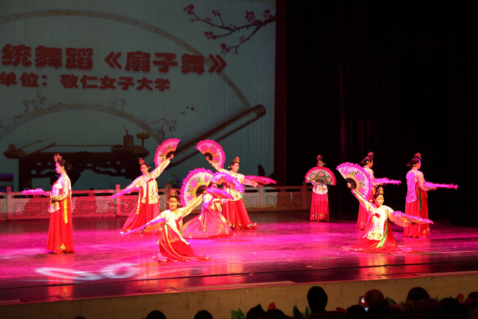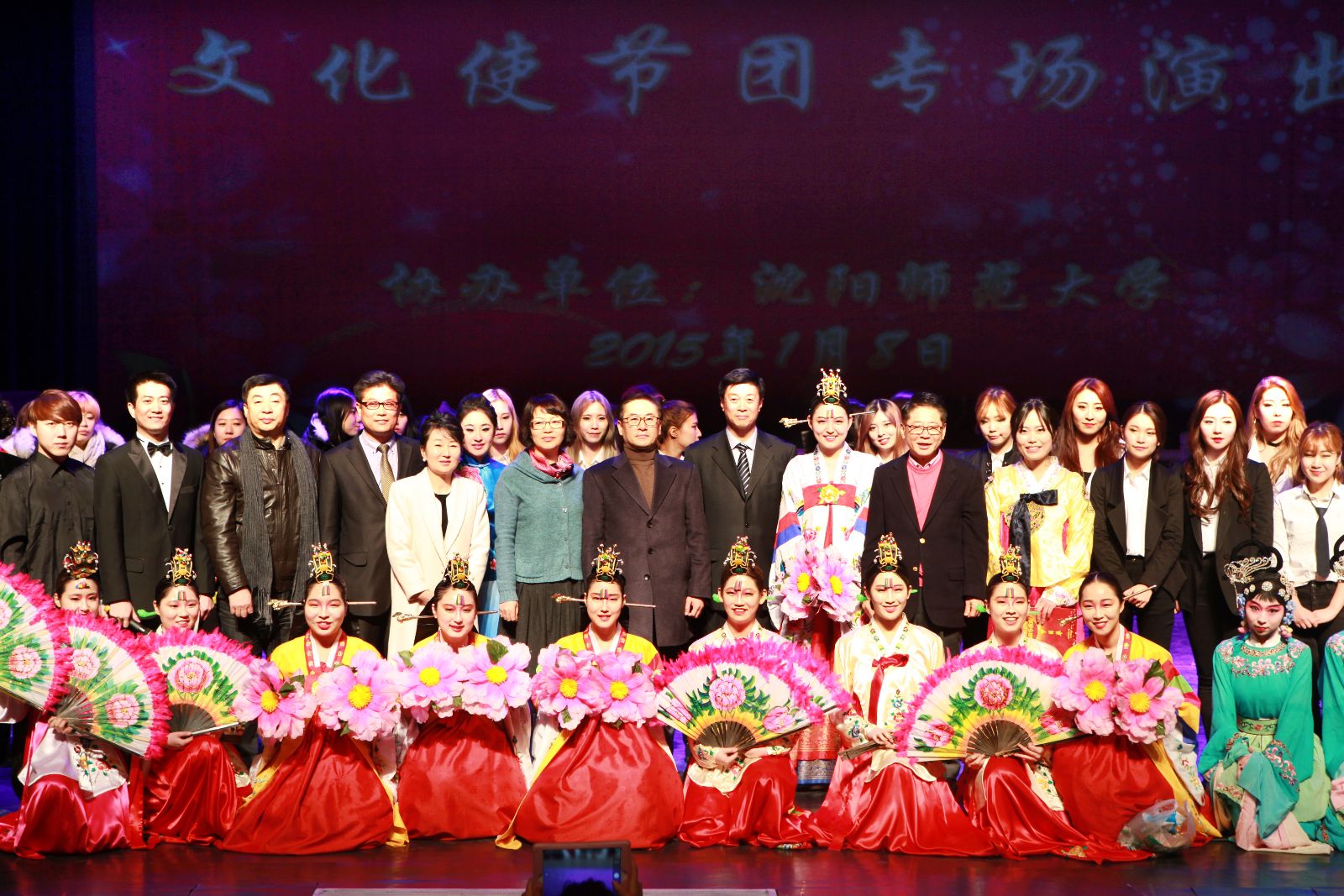 2015年1月8日晚,韩国敬仁女子大学文化使节团交流演出在必赢官网星河剧场举行,敬仁女子大学校长柳和善、必赢官网校长林群与500余名师生欢聚一堂,共同观看了中韩师生奉献的精彩演出。