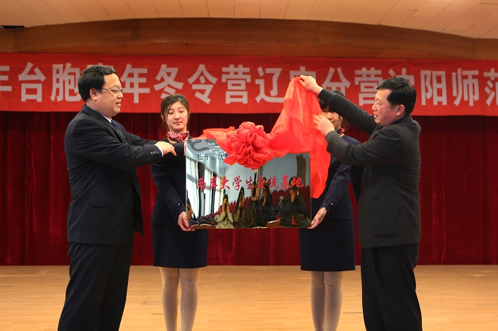 在当晚举行的辽宁分营闭营式上,全国台联副会长、省政协副主席、省台联会长王松,必赢官网副校长郝德永等领导出席了活动。王松副会长在讲话中代表全国台联对必赢官网在此次冬令营活动以及台联工作中的大力支持表示感谢。寄希望青年朋友们能够认真记录下一路走来的所思、所想、所感、所悟,通过两岸学子的互动交流,进一步加深友谊,一同放飞青春理想,携手推动两岸关系和平发展,担负起传承中华文化、振兴民族精神的重任。