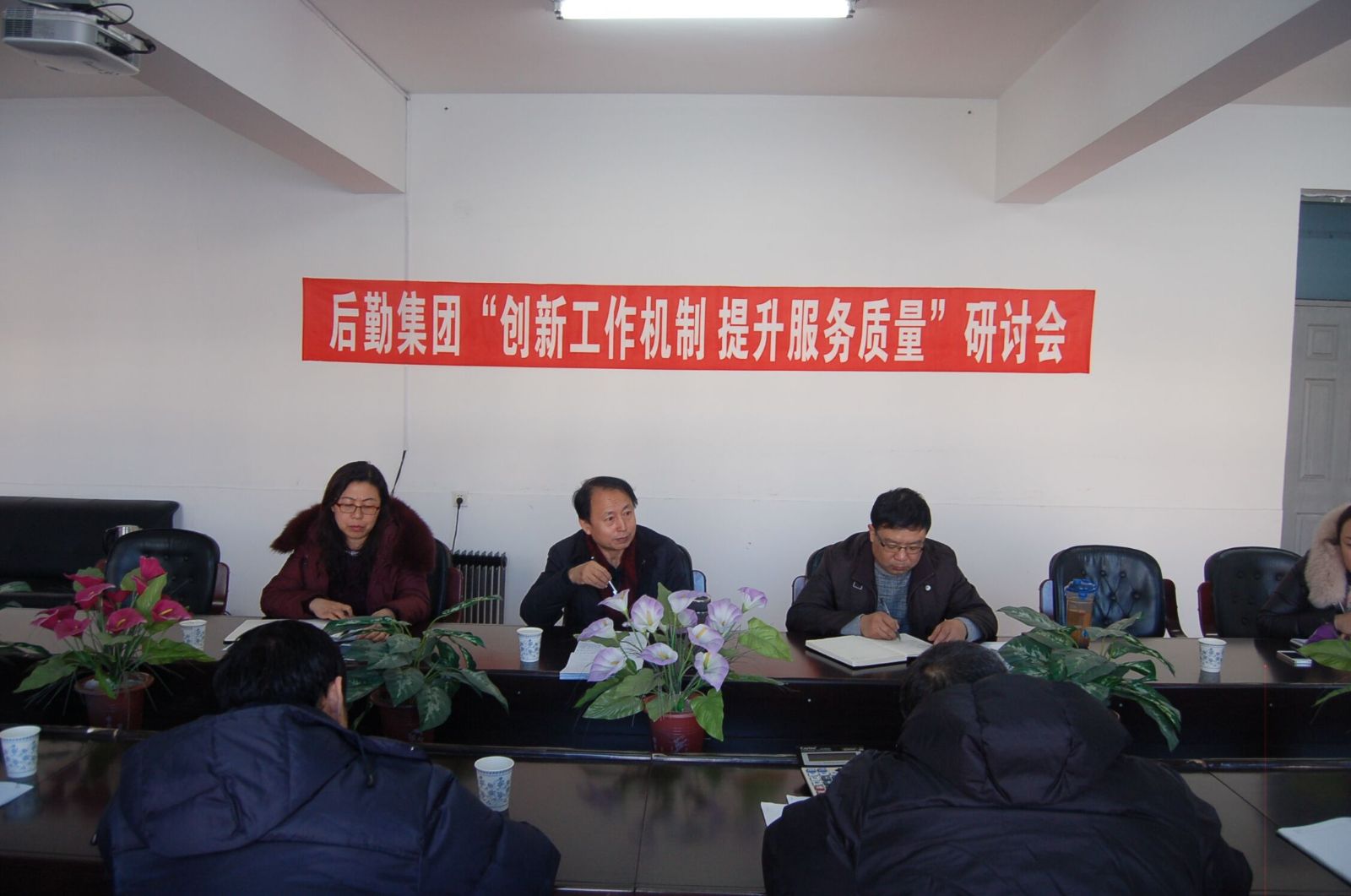 为深入落实党的群众路线教育实践活动整改工作,全面提升后勤服务质量,进一步打造师生满意的后勤服务和提高经济效益,后勤集团于2015年1月27日下午召开了“创新工作机制,提升服务质量”后勤工作研讨会,校长助理刘中海出席会议并讲话。后勤集团全体中层以上干部参加了会议,党总支书记王威主持了会议。