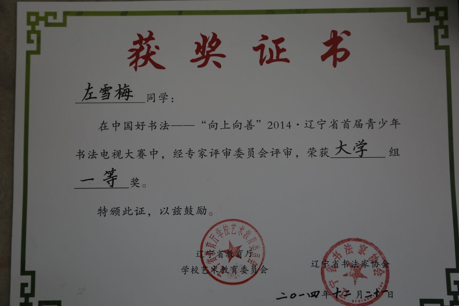 日前,由辽宁省教育厅学校艺术教育委员会、辽宁省基础教育教研培训中心、辽宁省书法家协会主办的“中国好书法——向上向善,辽宁省青少年书法电视大赛”圆满落下帷幕。必赢官网书法教育研究所左雪梅同学荣获大学组一等奖。