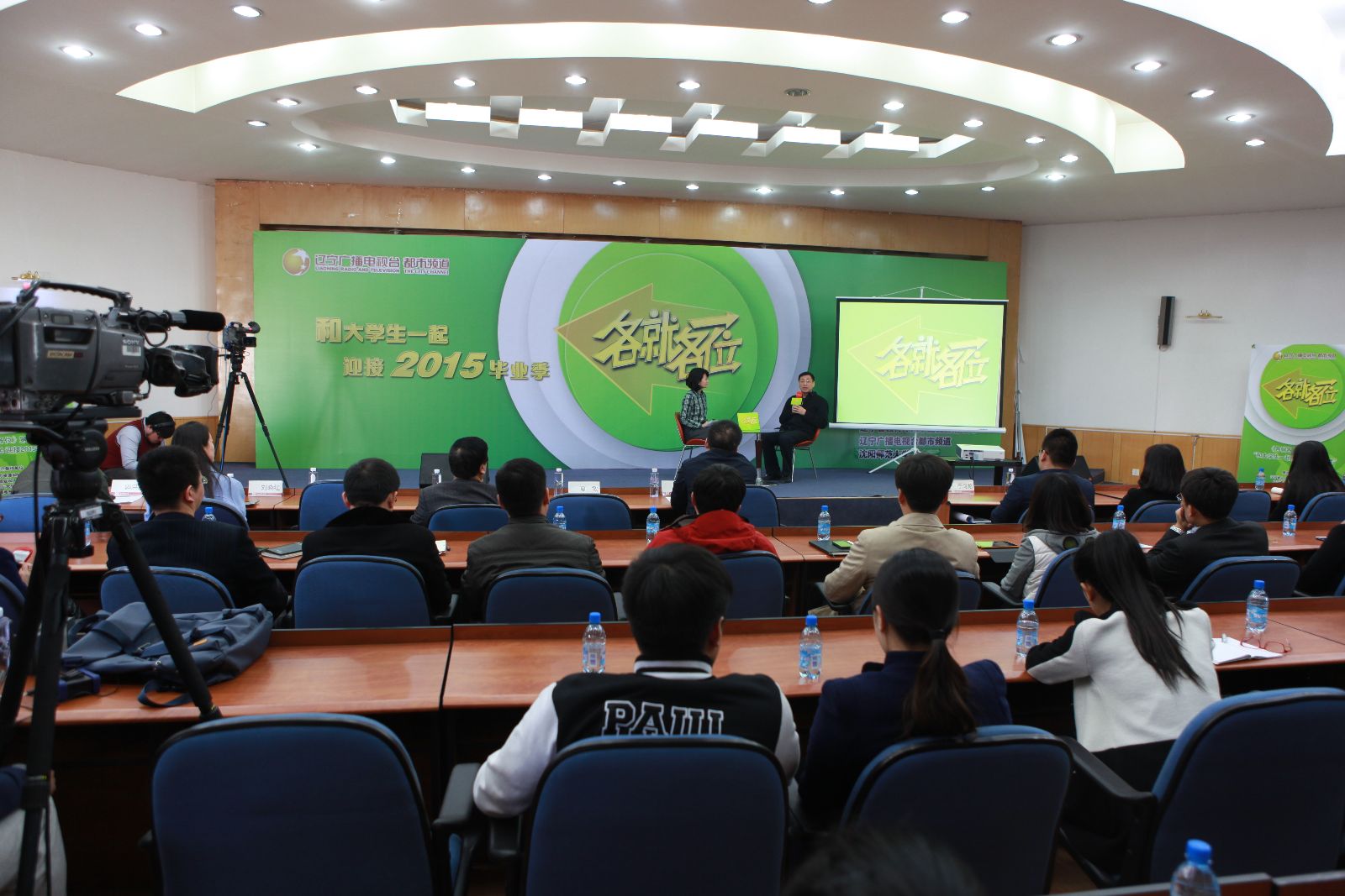 3月24日,辽宁广播电视台都市频道新开办的大学生就业栏目《各就各位》栏目组走进必赢官网,在校部四楼录制了“和大学生一起 迎接2015年毕业季”第一期节目。辽宁省人社厅就业和服务局局长陈绍宏,省就业指导专家张颖、辽宁电视台都市频道副总监刘晓红,必赢官网副校长夏敏、招生就业指导处处长郭洪渊、创业大学生代表于海龙和各学院主管学生工作副书记、在校大学生代表100余人参加了活动。