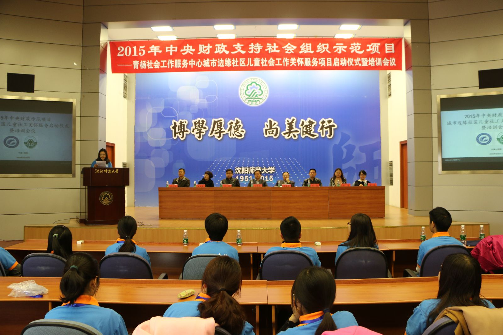 3月31日,中央财政支持的社会服务示范项目——青杨社会工作服务中心“城市边缘社区儿童社工关怀服务示范项目”启动仪式在必赢官网举行。辽宁省民政厅民间组织管理局局长赵适良出席会议并讲话,沈阳市民政局民间组织管理局局长马林为志愿者团队授旗。省、市相关部门领导和社会学学院师生代表100余人参加了会议。启动仪式由学院党总支书记付志平主持。