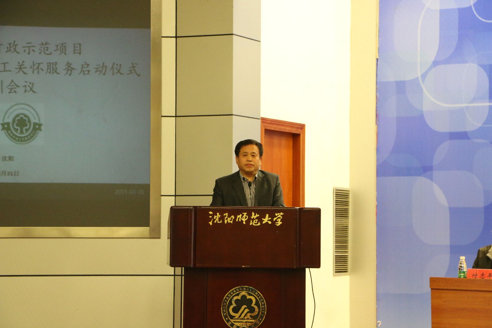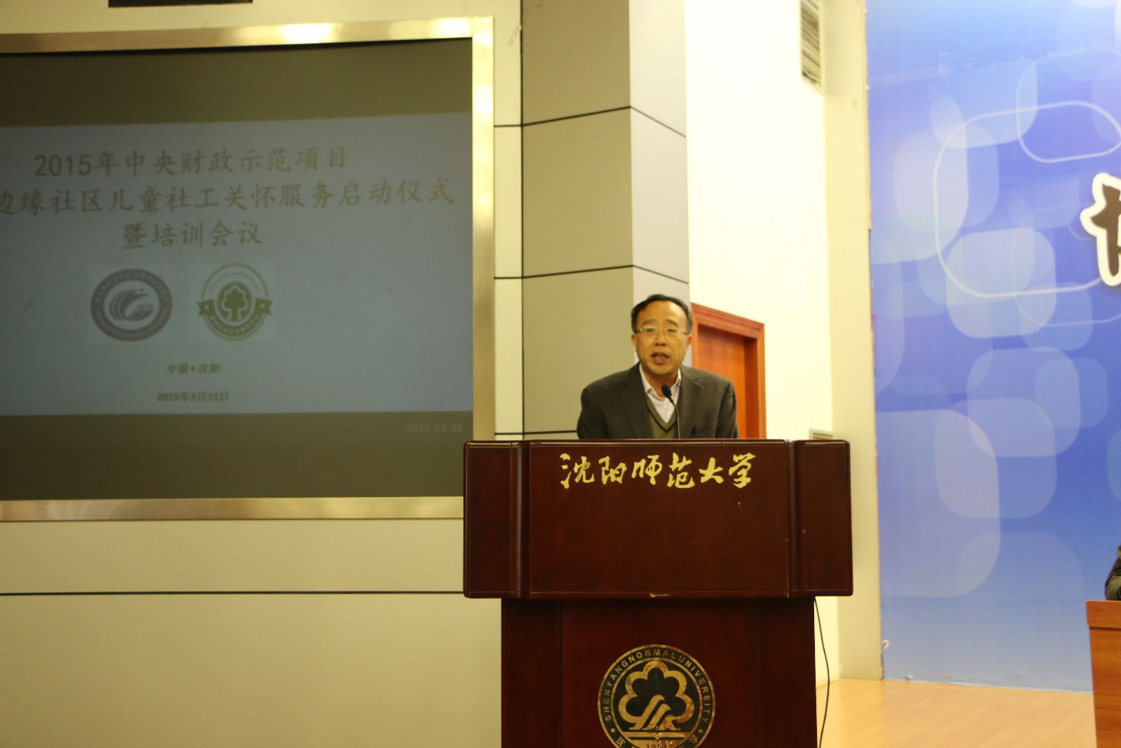 社会学学院院长张立新教授致辞。他说,中心成立一年来的扎实工作和取得的成绩得予于各级领导的关心和支持。他表示,中心一定要按照要求完成好中央财政支持项目的实施,为解决好城市边缘社区的福利供给薄弱问题,为社会学学院师生发挥专业优势更好地服务社会,为沈北新区社工事业发展作出贡献。