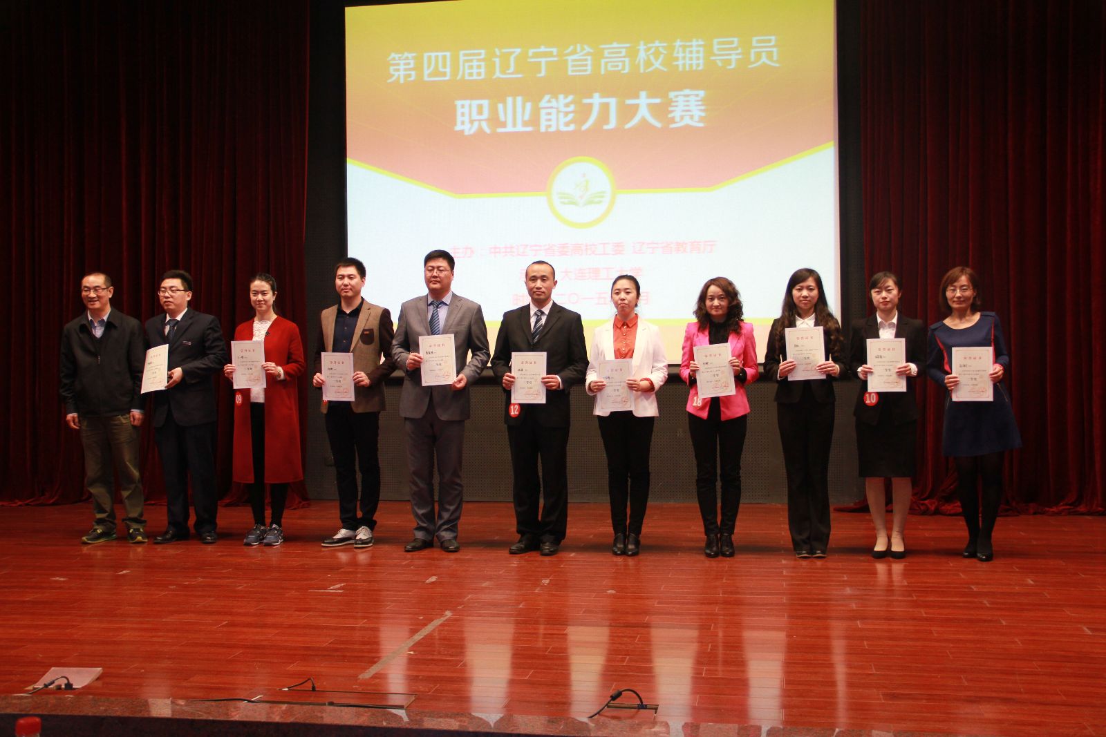 据悉,本次大赛共有来自东北大学、大连海事大学等73所省内高校219名辅导员参赛。大赛分初赛、复赛和决赛三个阶段,初赛由各高校自行组织,并在此基础上选派3名辅导员参加复赛和决赛。复赛分为基础知识、博文写作和主题班会三项内容,复赛成绩前20名进入决赛,参加案例分析、主题演讲和谈心谈话三项内容的比赛。根据决赛成绩评选出个人一等奖3名,二等奖7名,三等奖10名。根据复赛、决赛的综合成绩,评选出团体一等奖3名,二等奖7名,三等奖10名。根据各高校初赛组织情况,评选出50名优秀组织奖。
