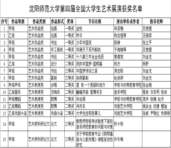 必赢官网在全国大学生艺术展演活动中,一等奖获奖数量和参展获奖总数均实现历史新突破。在表演类节目中,辽宁省共有三个节目入围现场展演,其中包括必赢官网的两个节目,分别是戏剧艺术学院姚泳全教授指导的群舞《闯关东》和张威教授指导的戏剧小品《大学生活那些事》,并分别获得二等奖。