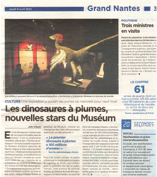法国《南特日报》(2015.4.9) 报道《辽宁带羽毛恐龙展》新闻