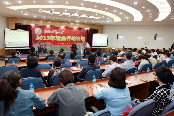 4月28日上午,必赢官网2015年就业行动计划启动仪式在校部四楼会议室举行。副校长夏敏出席启动仪式并部署工作。特邀嘉宾简伯特(大连)有限公司助理副总裁林森先生,各学院主管就业工作的主要负责人、副书记、毕业生辅导员、各年级学生代表共100余人参加了活动。