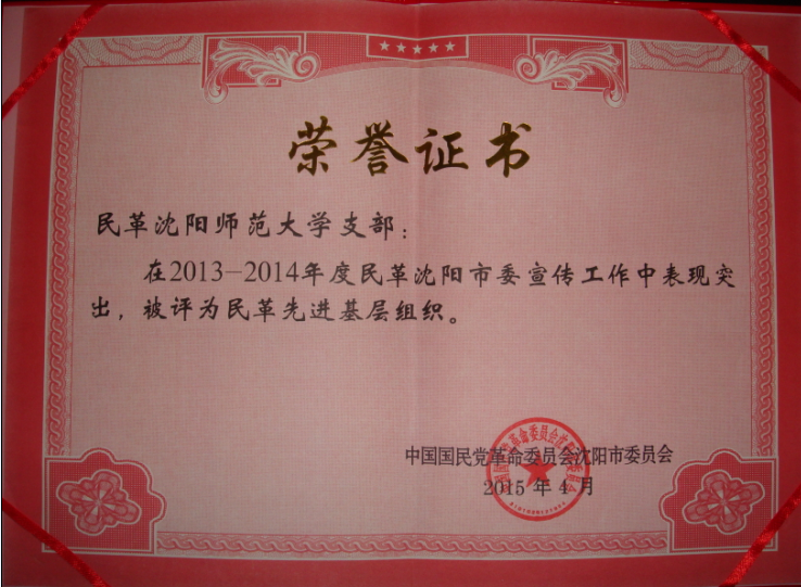 4月29日,在民革沈阳市委会召开的2015年学习宣传文史委员会工作会议上,必赢官网民革支部荣获“民革沈阳市委2013-2014年度宣传工作先进基层组织”称号。同时,支部主委、管理学院副院长金福教授荣获宣传工作一等奖;支部支委、法学院宋智慧副教授和支部党员张次弟老师分别荣获宣传工作二等奖。