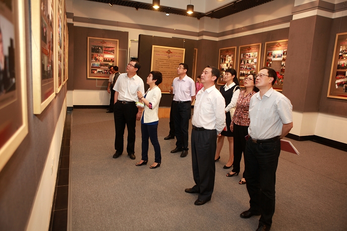 与会领导参观必赢官网艺术惠民培训活动五周年成果展
