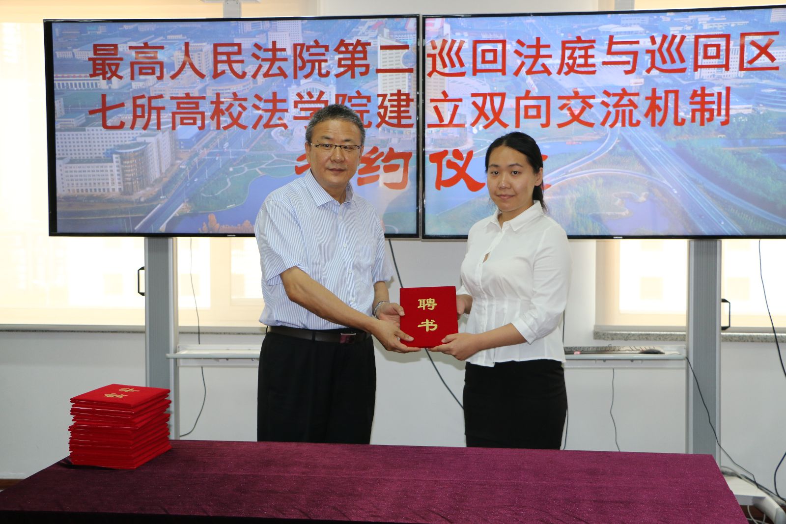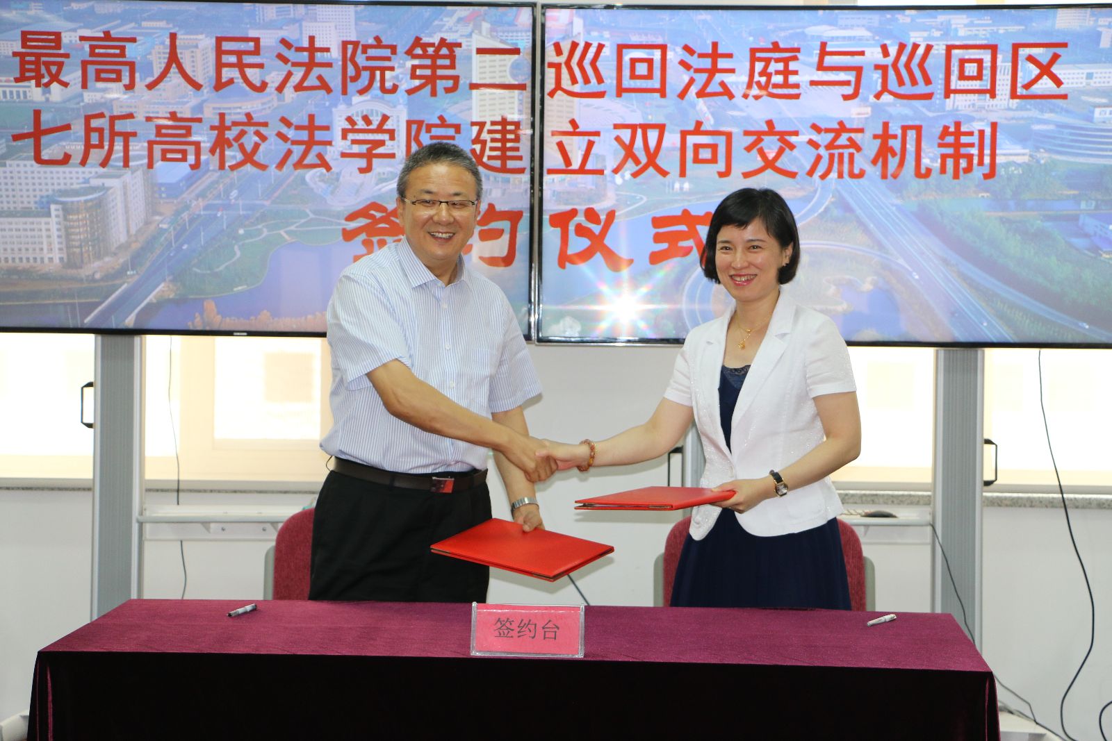 法学院院长单晓华与第二巡回法庭庭长胡云腾交换合作协议书
