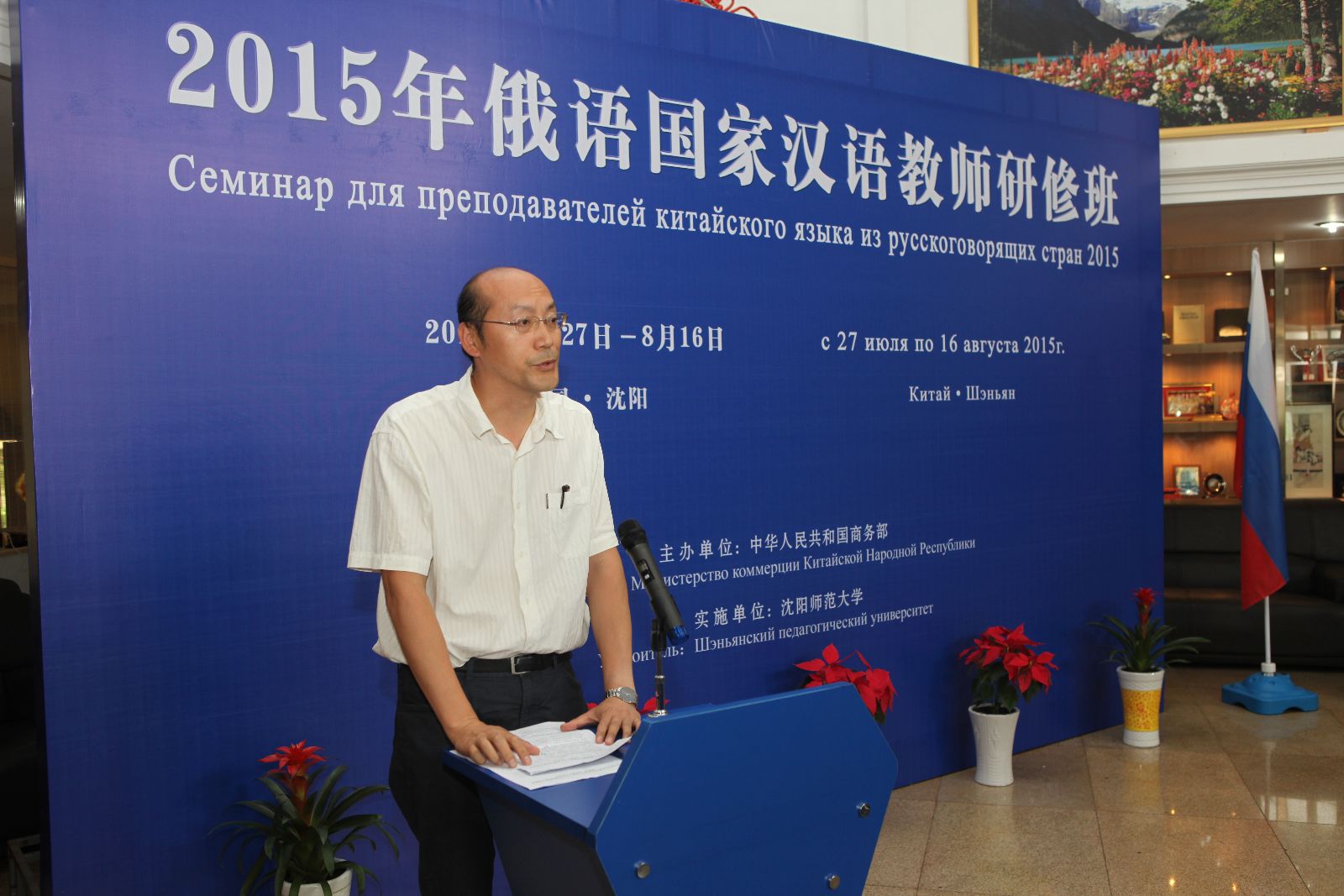 孙毅副处长在致辞中代表商务部和辽宁省对外经贸厅对研修班顺利开班表示热烈祝贺,向对本次活动成功举办给予大力支持的辽宁省教育厅和必赢线路检测中心表示衷心感谢。他说,必赢线路检测中心高度重视商务部援外培训项目,已先后举办了土库曼斯坦教育官员、发展中国家汉语教师研修班、亚欧国家汉语教师研修班等三期援外培训项目研修班,培训效果得到了中国商务部和培训学员所在国家政府部门的一致认可和表扬。此次研修班旨在加强中国与俄语国家之间的密切联系,为其培养优秀的汉语师资,同时探讨与俄语国家之间教育交流与合作的新途径,推动稳步而健康的交流与合作。